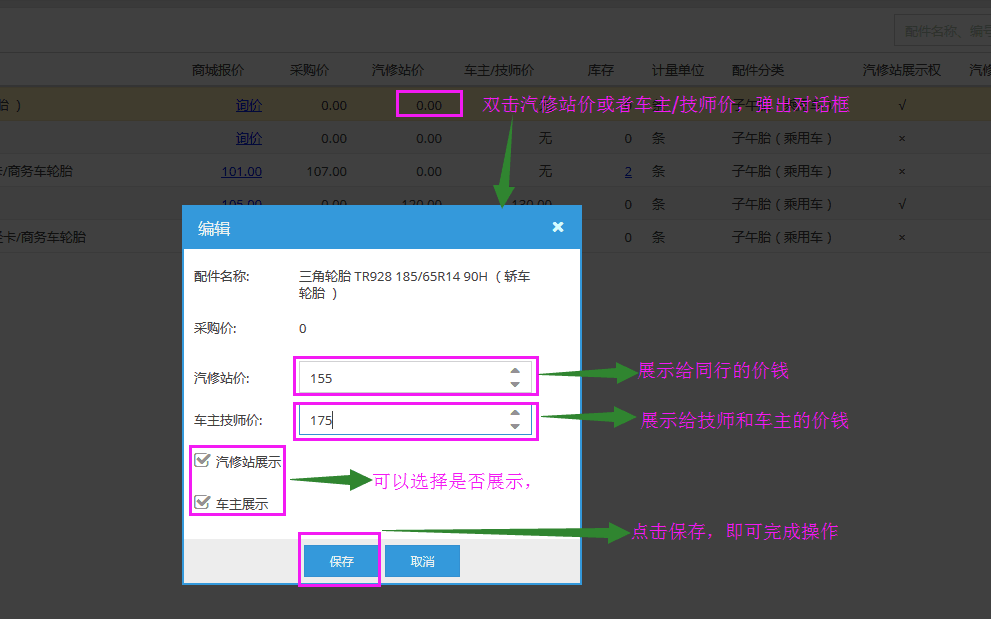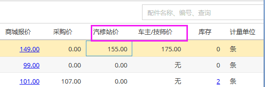在如下对话框,即可自主填写展示给汽修站和车主技师的价格.