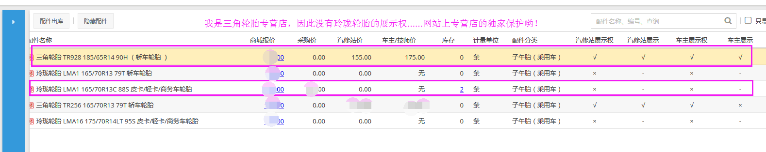 备注:配件展示权只适用您的专营品牌,即只有您代理的专营品牌才可以面向汽修站、车主和技师展示,其他未代理品牌不具备该权限。这是修车人平台对专营店给予的独家网络保护,让您在此品牌专营范围内,享受最大的竞争优势。